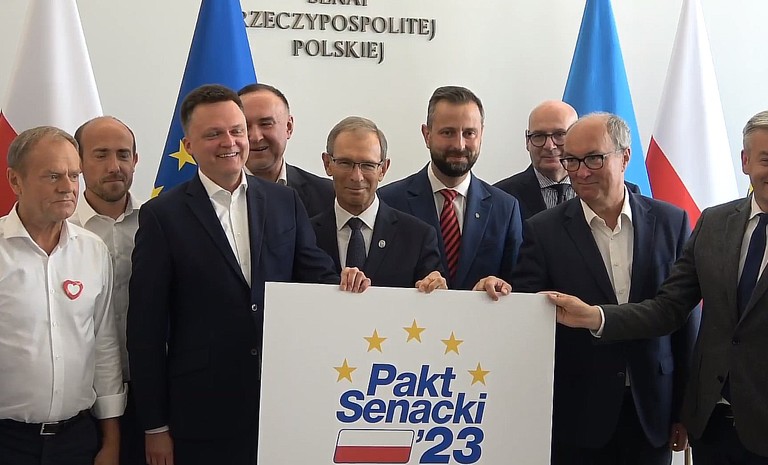 Dzisiaj w siedzibie Senatu RP zebrali się liderzy partii demokratycznej opozycji, by ogłosić przyjęcie tzw. Paktu senackiego w wyborach parlamentarnych. Pakt podpisali liderzy Nowej Lewicy, Platformy Obywatelskiej, Polskiego ...